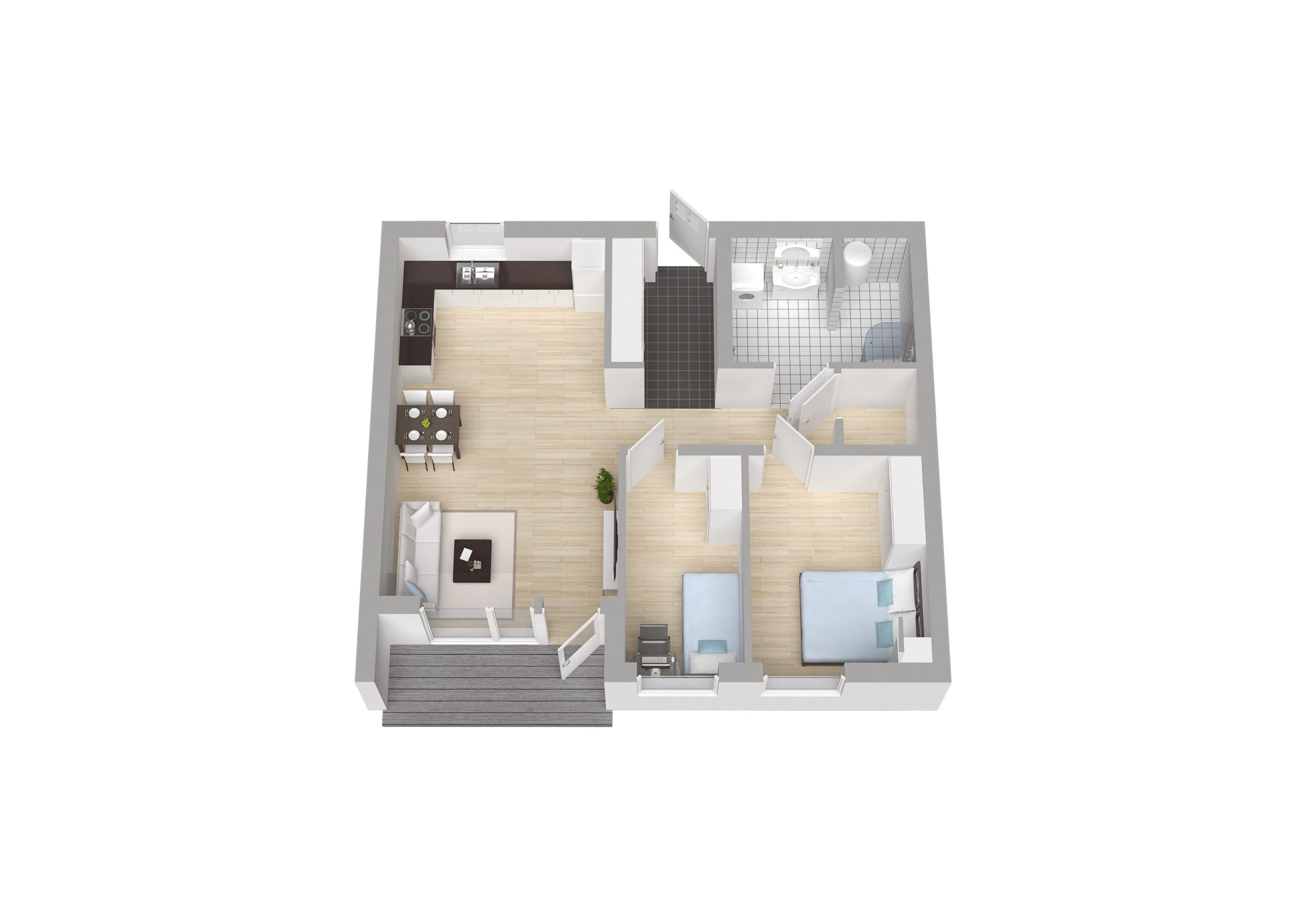 Hus B ble ferdigstilt sommeren 2025 og flere har flyttet inn i sine nye boliger. I dag har vi tre ledige leiligheter for salg. Alle disse er i 2. etasje og har fantastisk utsikt mot Baugsberget. Vi blir gjerne med deg på visning hvis du har lyst til å se.